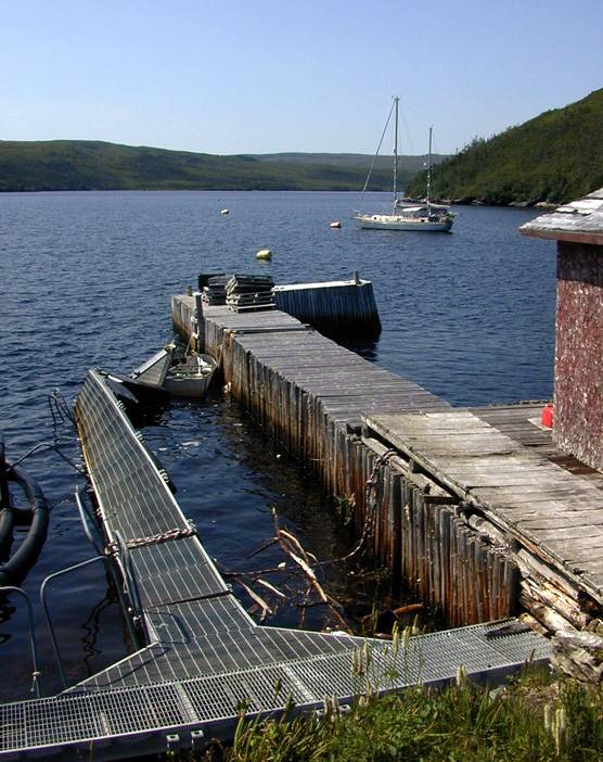 Temporarily moored off a fish farm dock while Carolyn