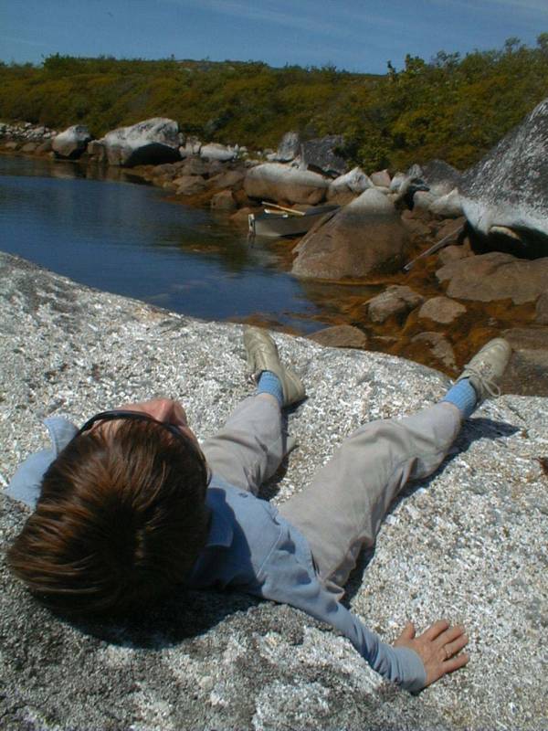 Carolyn takes a rest (!) after a hike inland