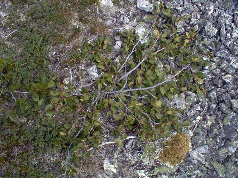 Looking down on a stunted alder. Only 1 inch high! 1 foot around.