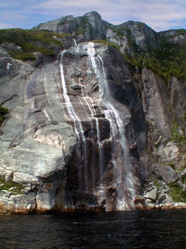 This waterfall is several hundred feet high. One of many. Grey R., Nflnd